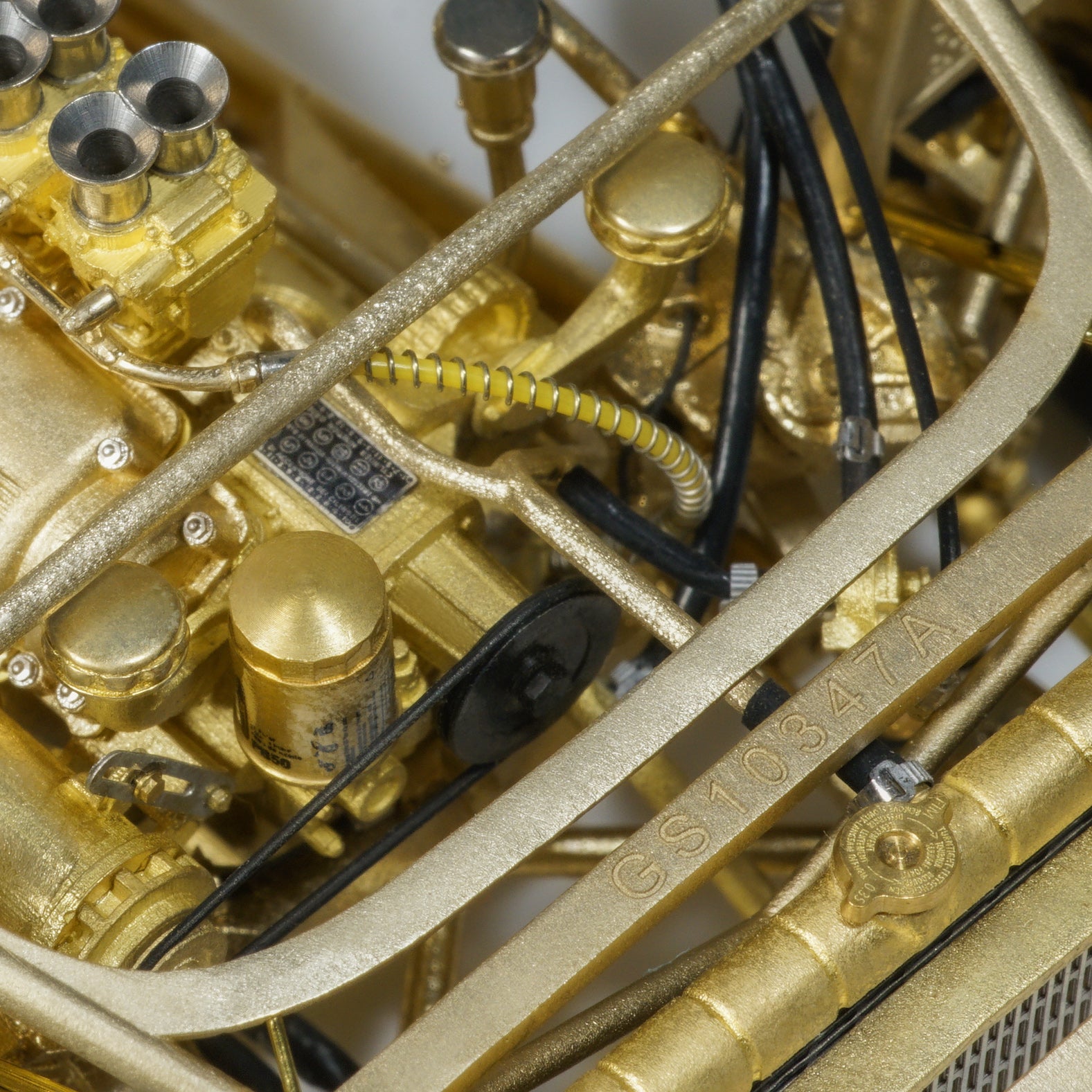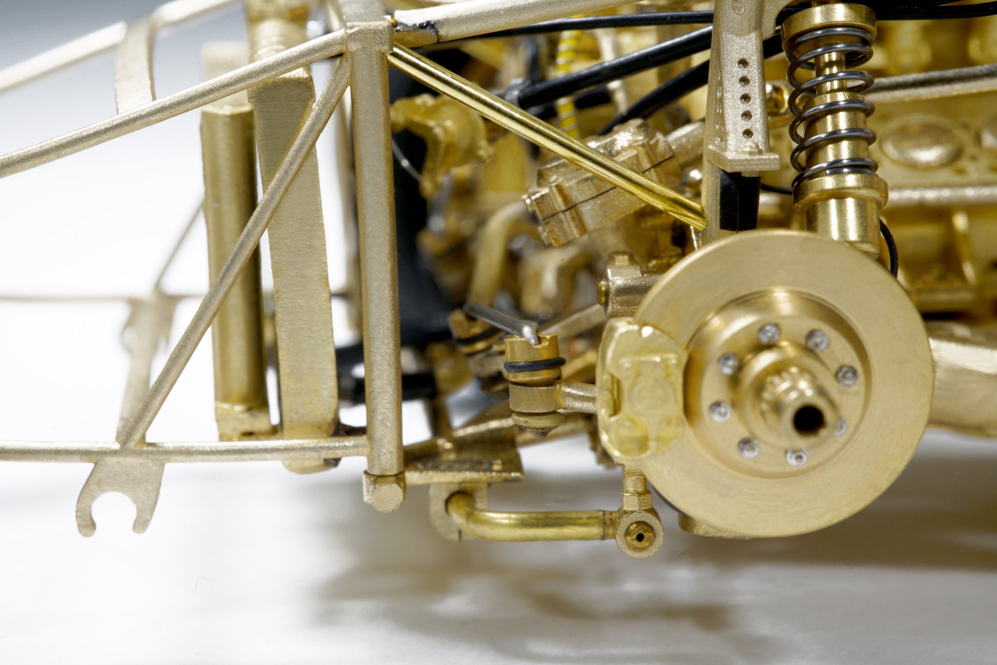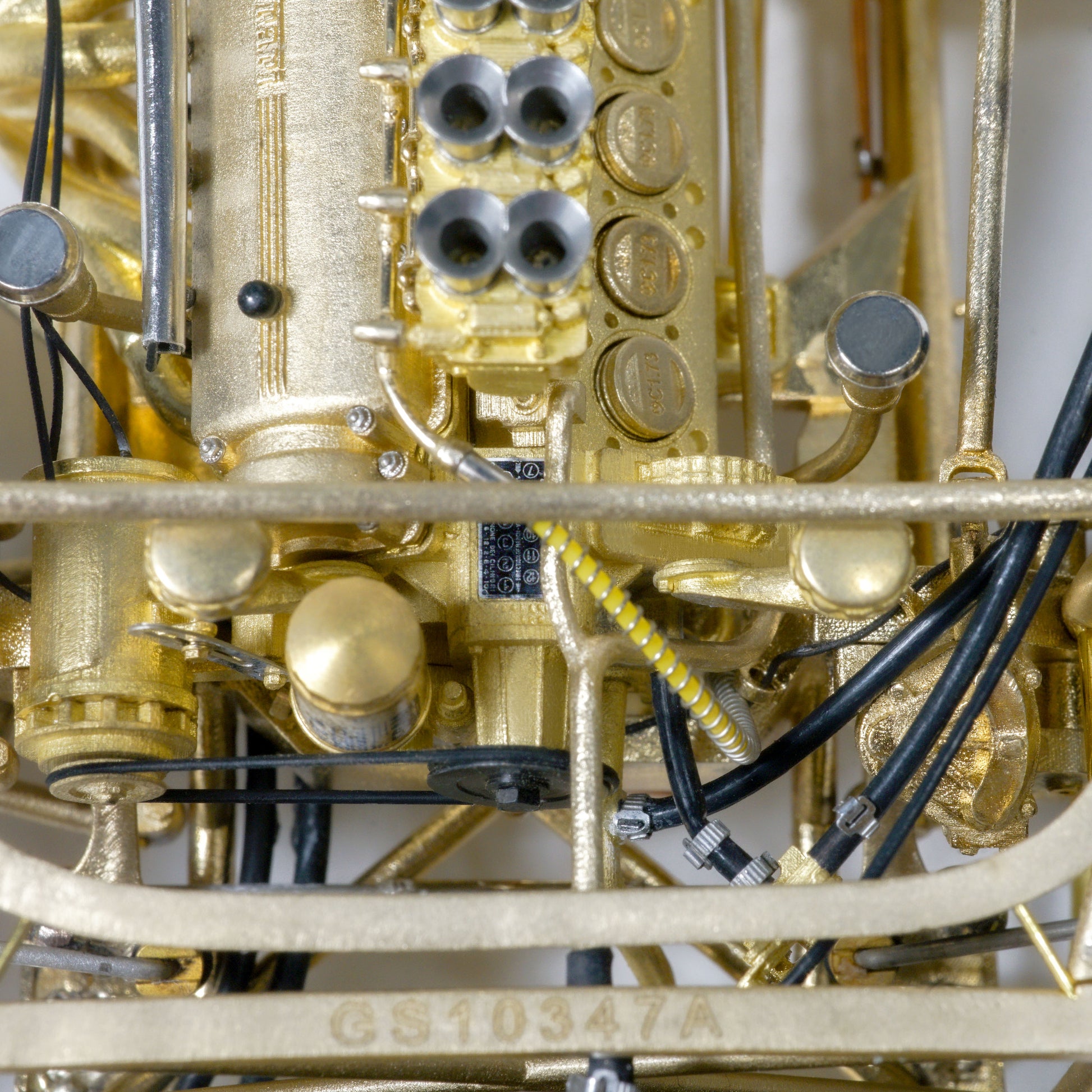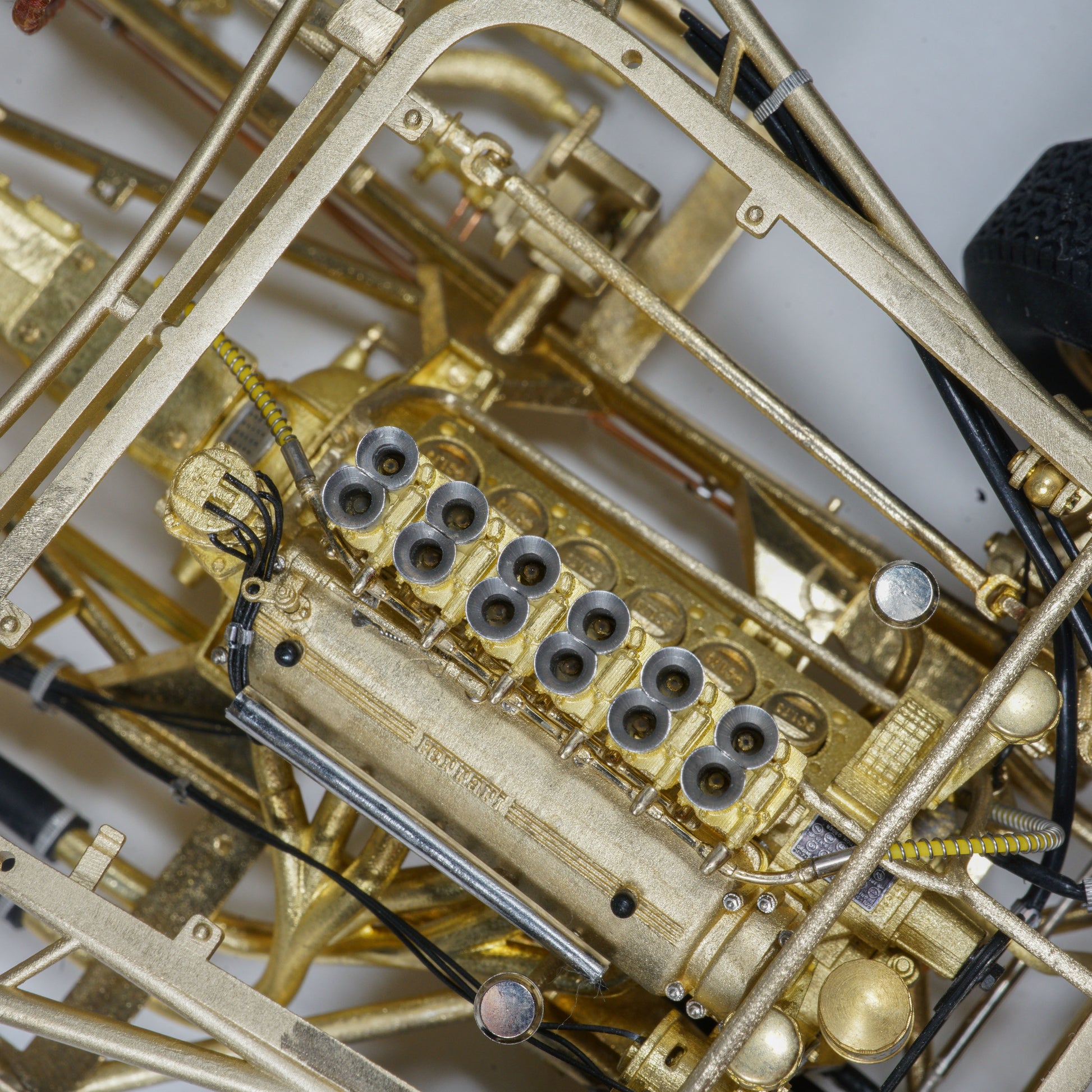 This model captures every structural and mechanical detail of the original chassis, from the authentic frame rails and suspension geometry to the finely replicated engine block, transmission, and exhaust system. With over 1,400 parts and 95% copper-based materials, the chassis achieves unparalleled authenticity. The use of multiple materials—such as stainless steel, glass, rubber, and more—ensures a true-to-life representation.